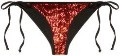 Vegas sequin bikini bottoms feature our signature Scrunch Bun® design. DETAILS: Made in the USA. Sequin body, fully lined, Gold shimmer trim. Micro rise scrunch bottoms with side ties. CARE INSTRUCTIONS: Hand wash, line dry, no bleach, cool iron if necessary.