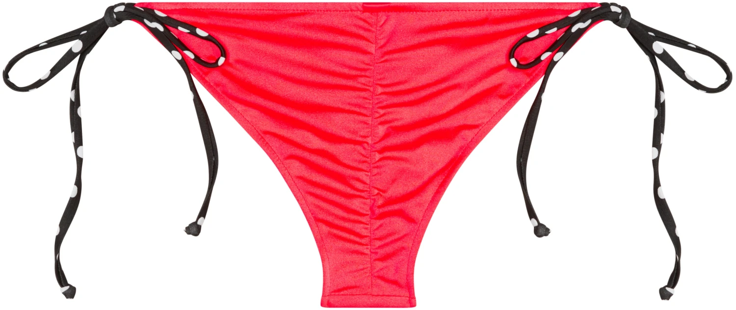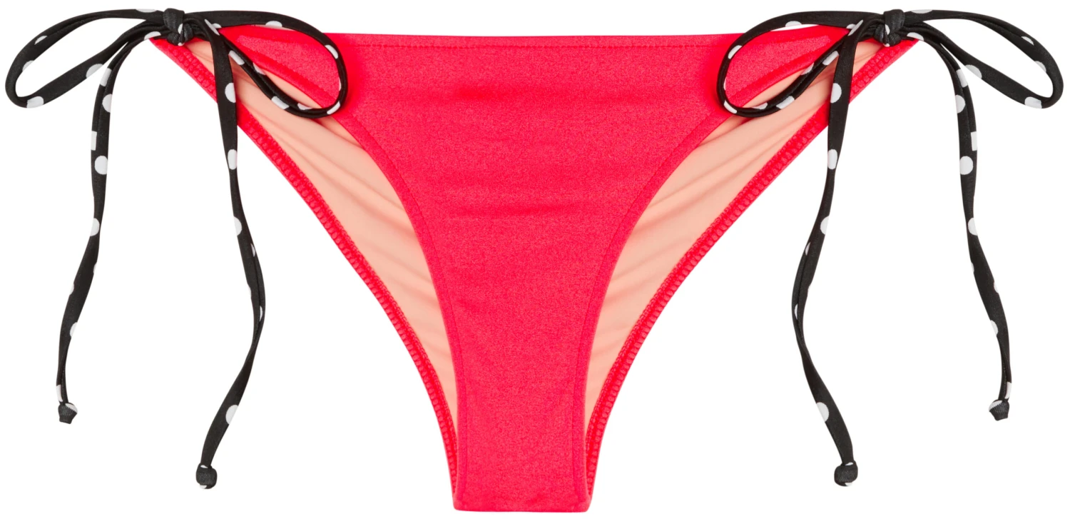 Adventure through the sandy beaches and calm waves with our clean, simple and timeless bikinis! Featuring our signature neon coral adjustable triangle top with black polka dot trim! DETAILS: Made in the USA, fully lined – clean finish with no binding trim. Adjustable triangle string bikini top with skinny neckties and bust pad pockets. CARE INSTRUCTIONS: Hand wash, line dry, no bleach, cool iron if necessary.