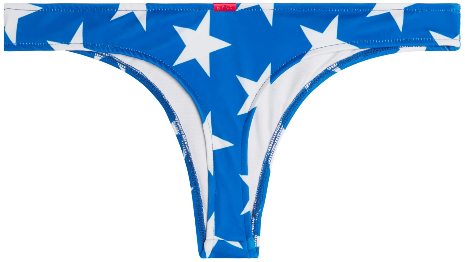 Begin your tropical adventure in this resort ready bikini bottom! DETAILS: Made in the USA, fully lined – clean finish with no binding trim. Banded Brazilian thong bottoms, fully lined. CARE INSTRUCTIONS: Hand wash, line dry, no bleach, cool iron if necessary.