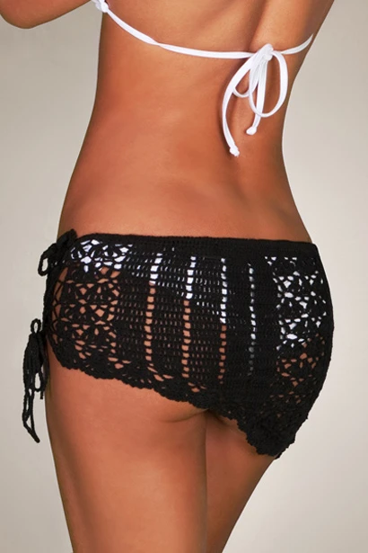Tequila Sunset Black Mini Crochet Beach Skirt Cover Up